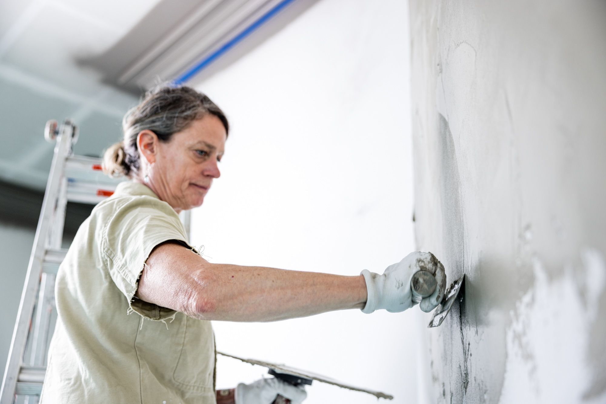 Her days are often shaped by coordination with other trades and the realities of construction environments. Molly speaks openly about the physical demand and also the mental patience required to work with plaster at scale. But within those constraints, she also finds ways to experience clarity and presence. As a solo applicator, each wall demands a plan and an understanding of when to step back.